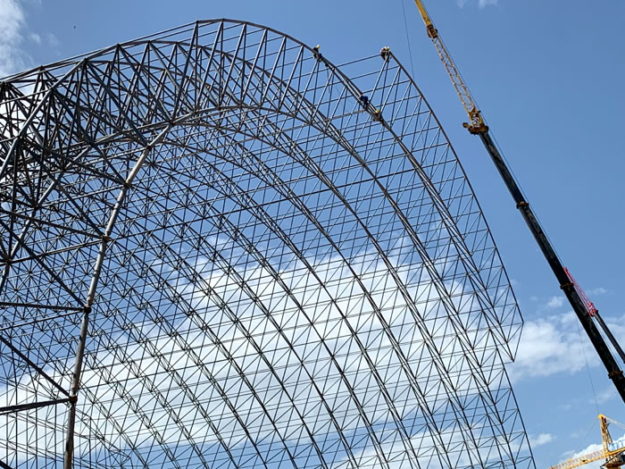 (2)网架加工前应对现场尺寸进行复测,确认无误后方可进行加工、安装;网架制作、运输、安装应遵守《空间网格结构技术规程》JGJ7-2010、《钢网架北宁螺栓球节点》JG/T 10-2009、《钢网架北宁螺栓球节点用高强度螺栓》 GB/T 16939-2016、《北宁钢结构北宁工程北宁施工规范》 GB50755-2012、《北宁钢结构北宁工程施工质量验收标准》 GB50205-2020。